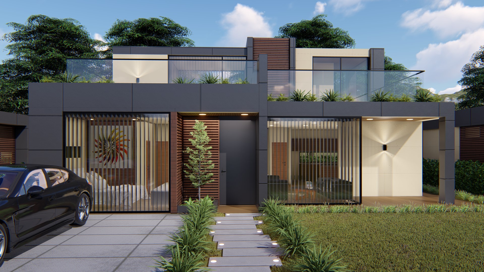 Opción Básica (6 módulos): 3 Habitaciones, 3 baños, sala, comedor, cocina integral, cuarto de ropas.